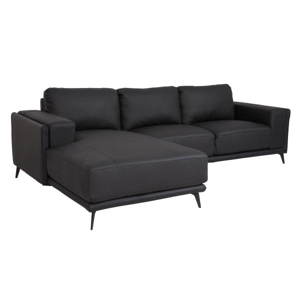 Homeville Lissabon chaiselong læder sort venstre 285x137x86cm